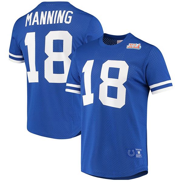 Men S Mitchell Ness Peyton Manning Royal Indianapolis Colts Retired Player Name Number Mesh Crew Neck Top